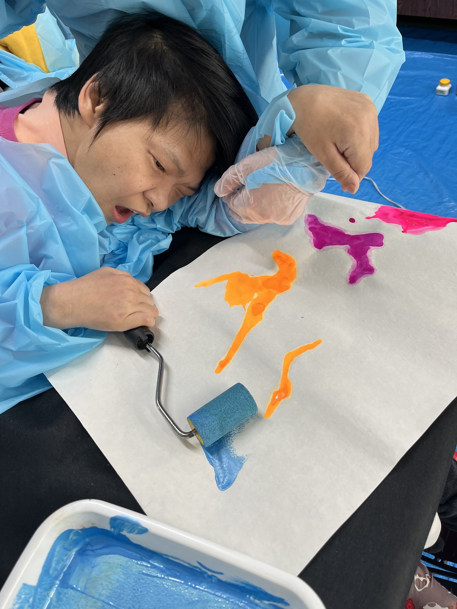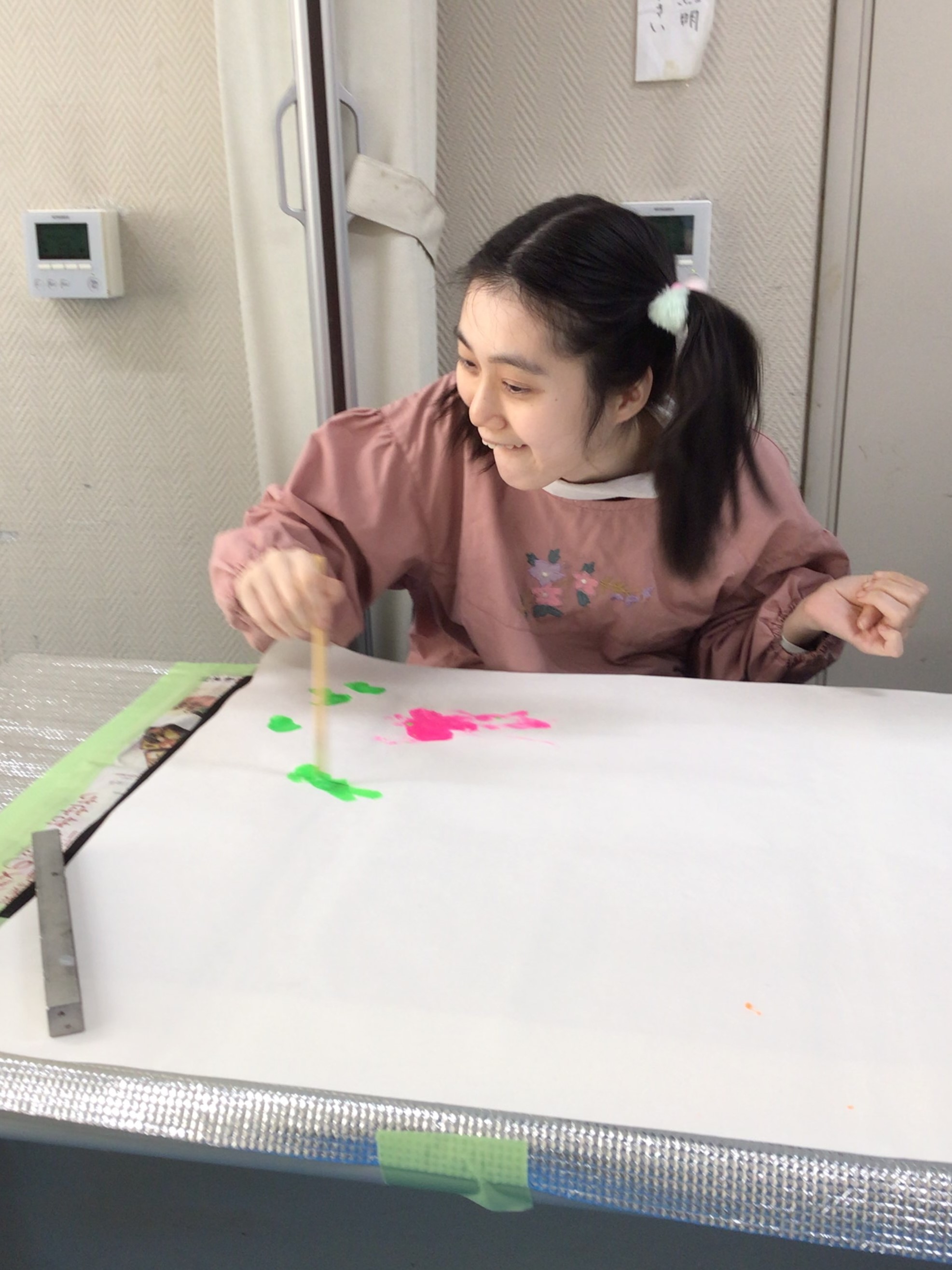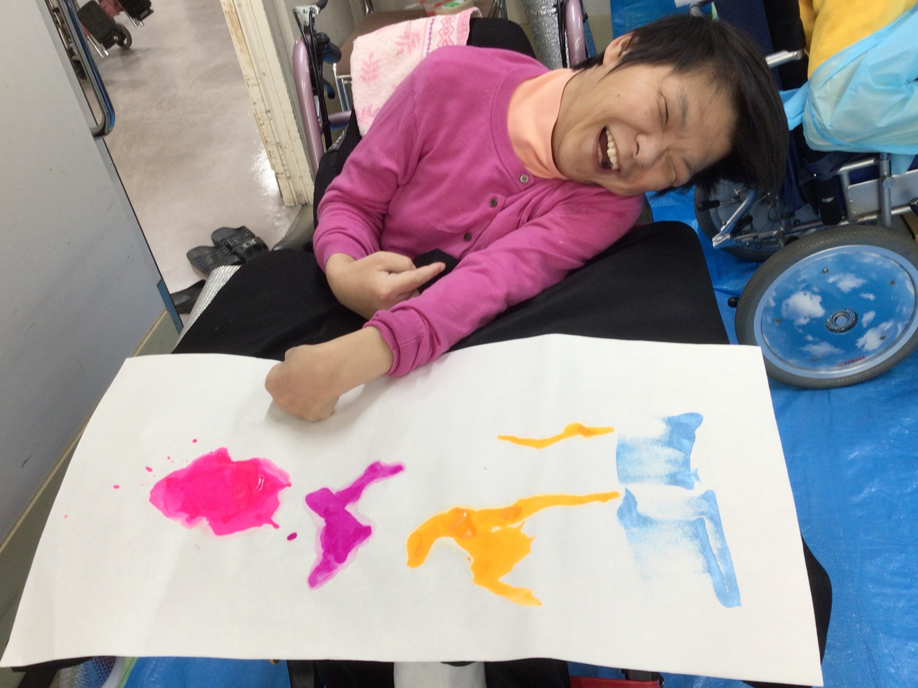 絵の具を入れたコップを倒して模様を描いたりと、表現方法は様々です!