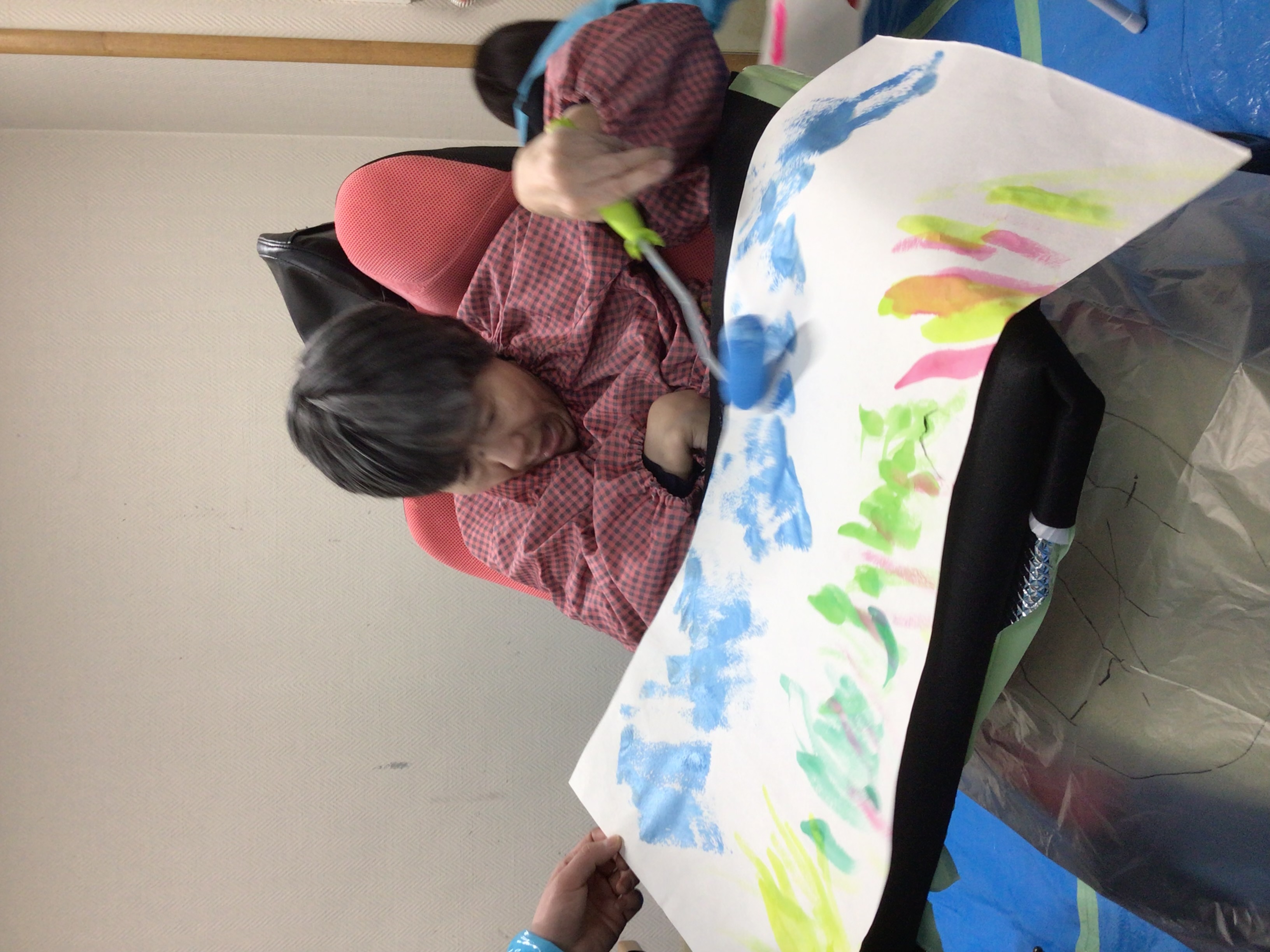 大きな紙にのびのびと、時には絵の具で汚れながらも、夢中になって取り組む姿は本当に素敵です!