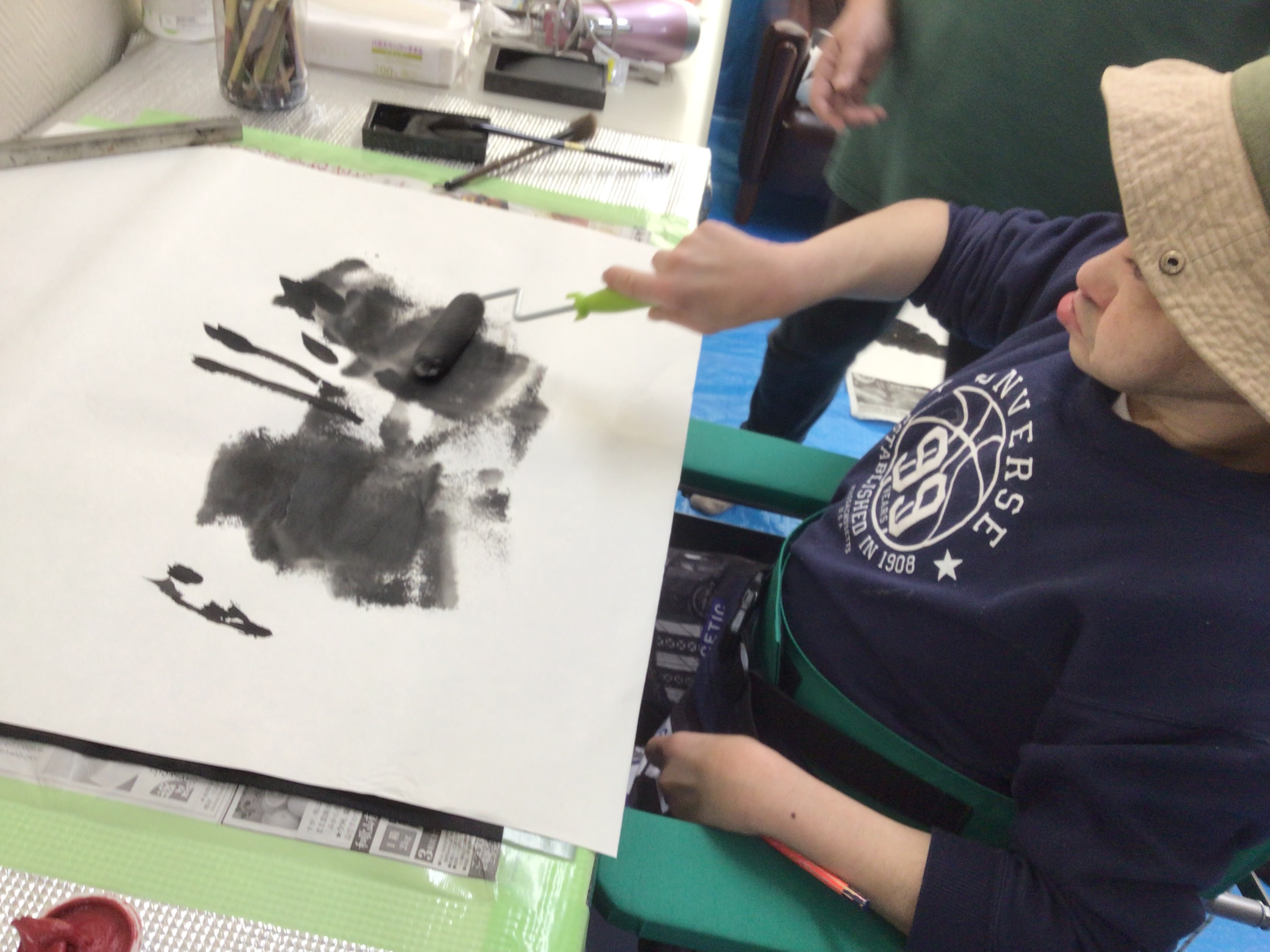ローラーを使って背景を描いたり、
