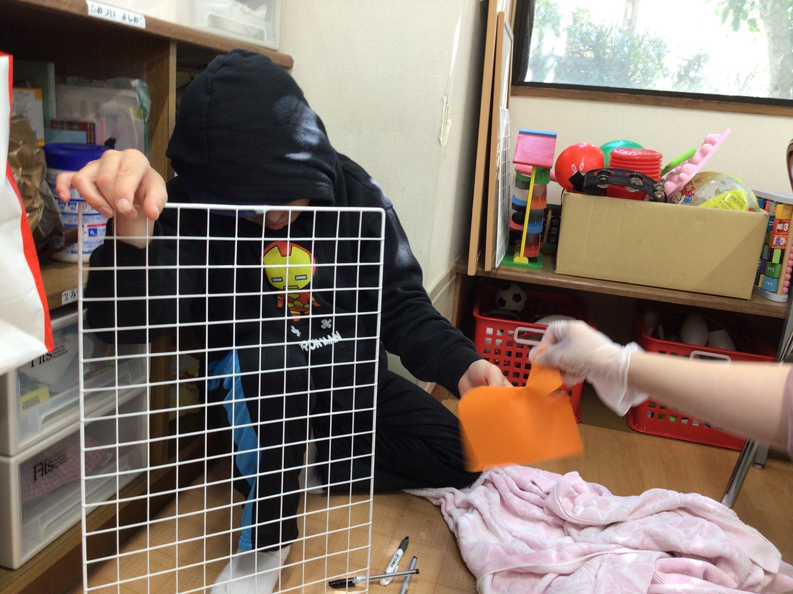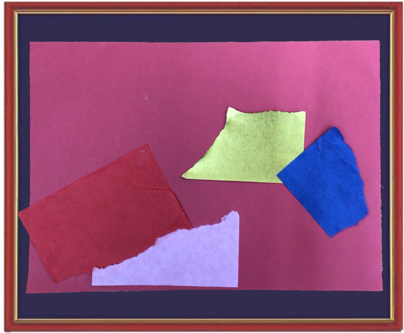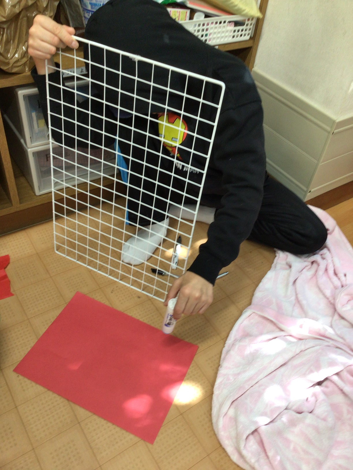 好きな色の折り紙を選んで、介助者と一緒にちぎって、のりをつけて貼りました。
