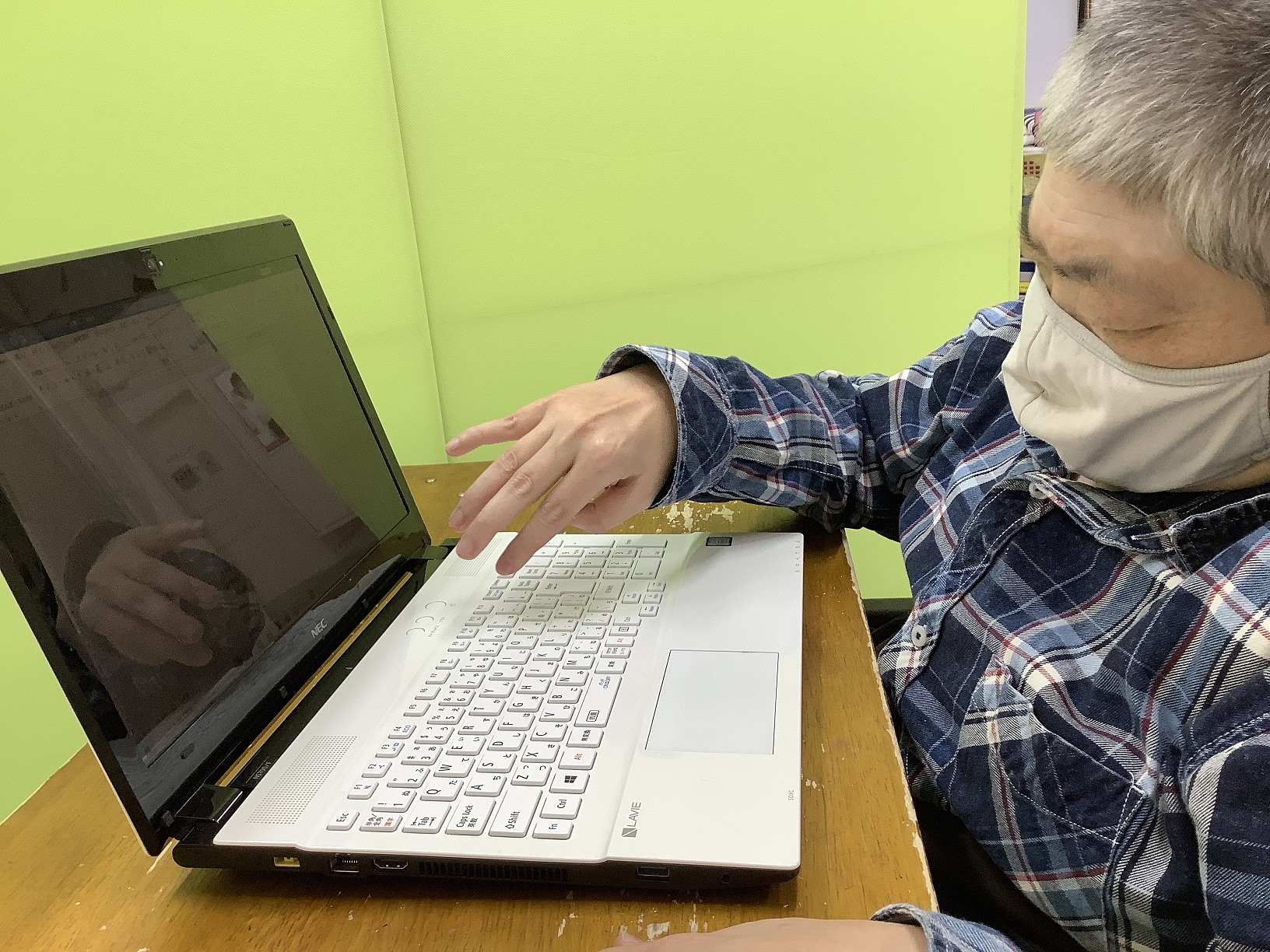 大好きなお母さんのことを考えながらパソコンで文章を打ち、