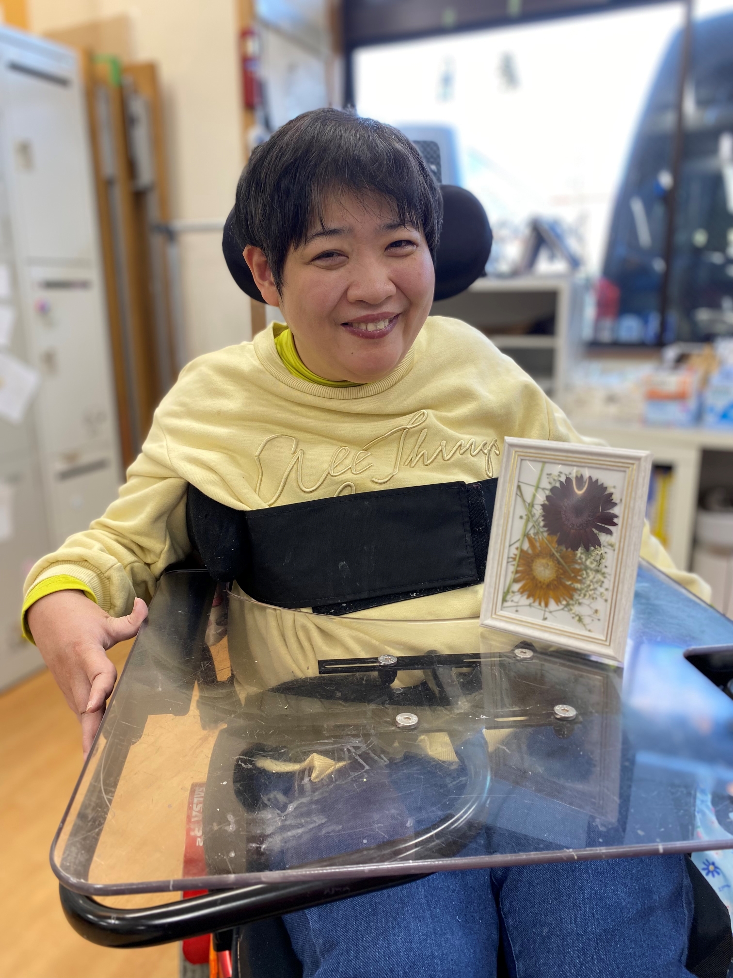 おおきなひまわり「お花を並べるところと、額縁にひもをつけたところ。」