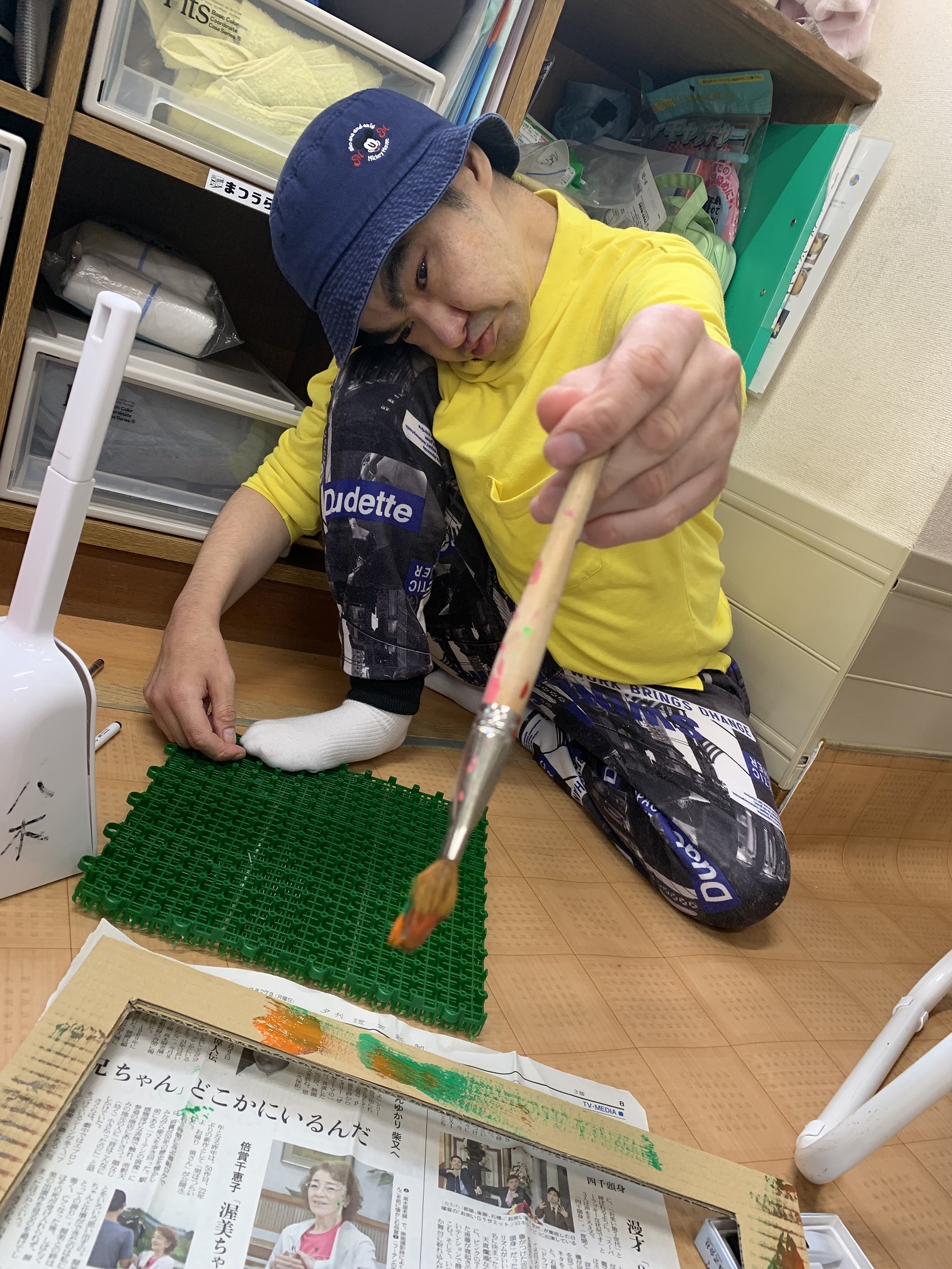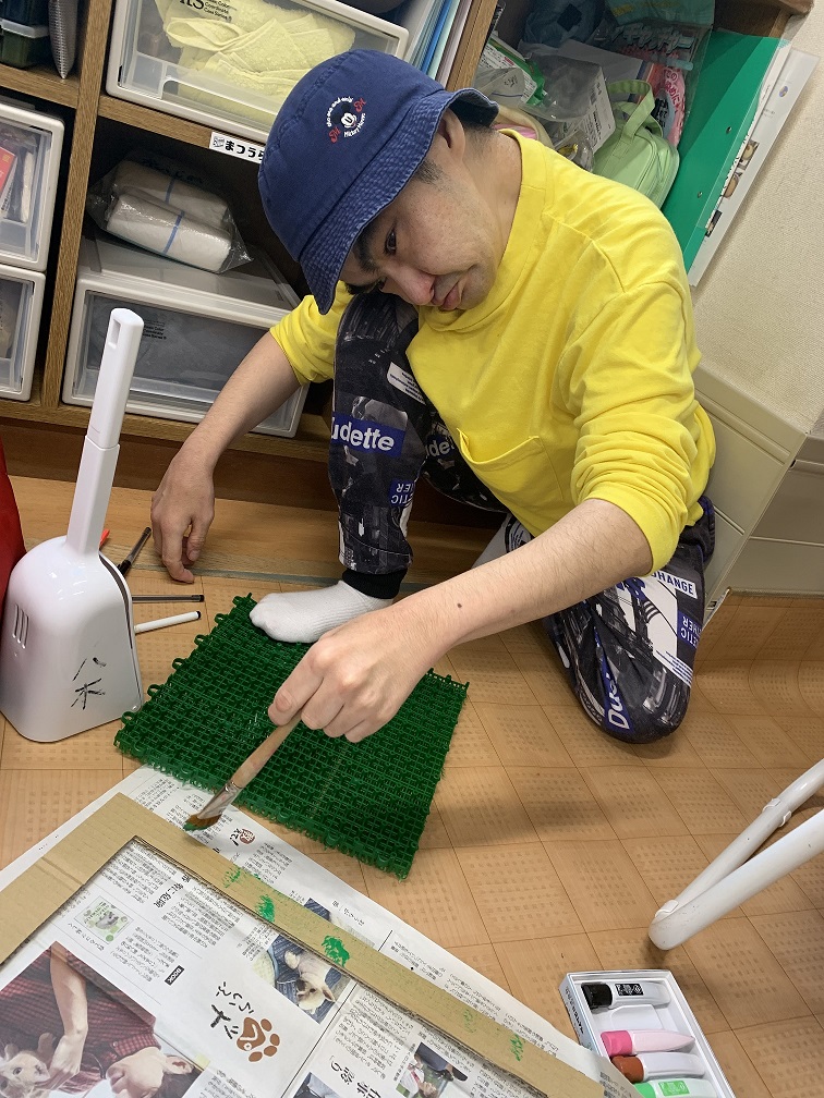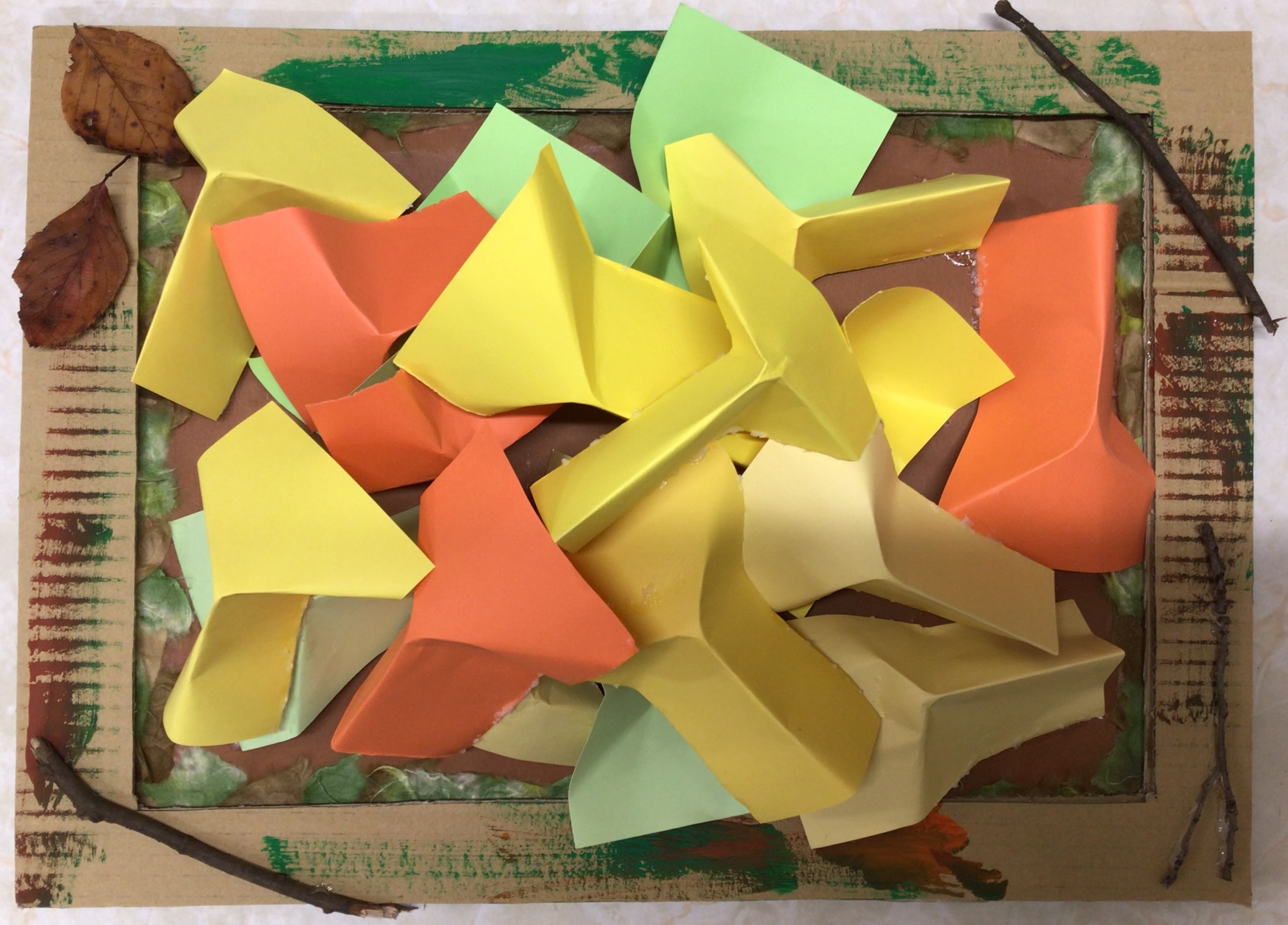枯葉や小枝も散歩中に拾って遊んでいたものです。額縁も手作りして、好きな色を塗りました。