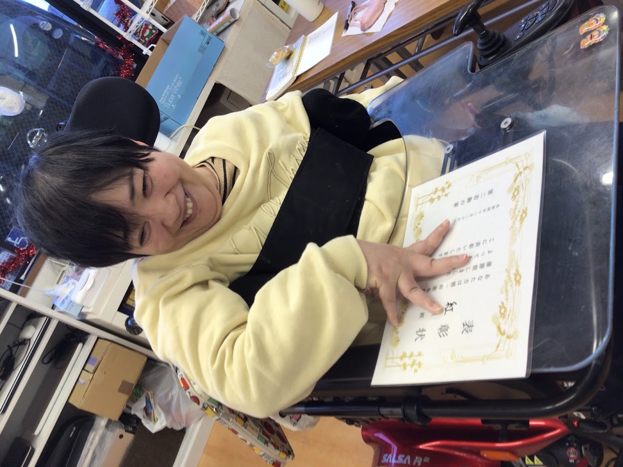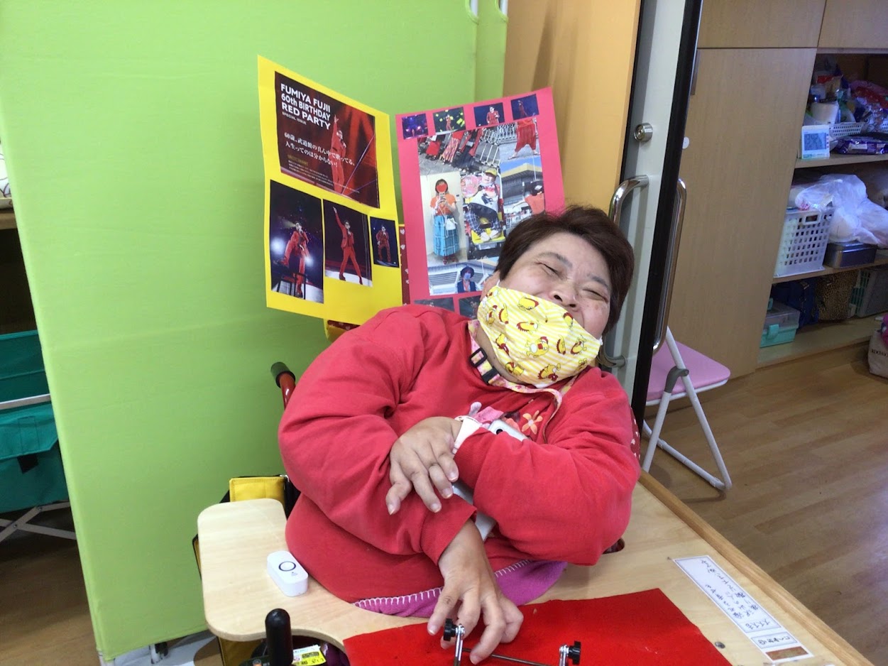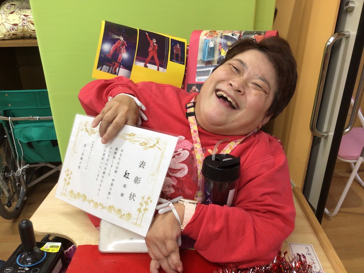 自分の好きな芸能人を車いすに貼って、気合を入れるメンバーさんもいました。