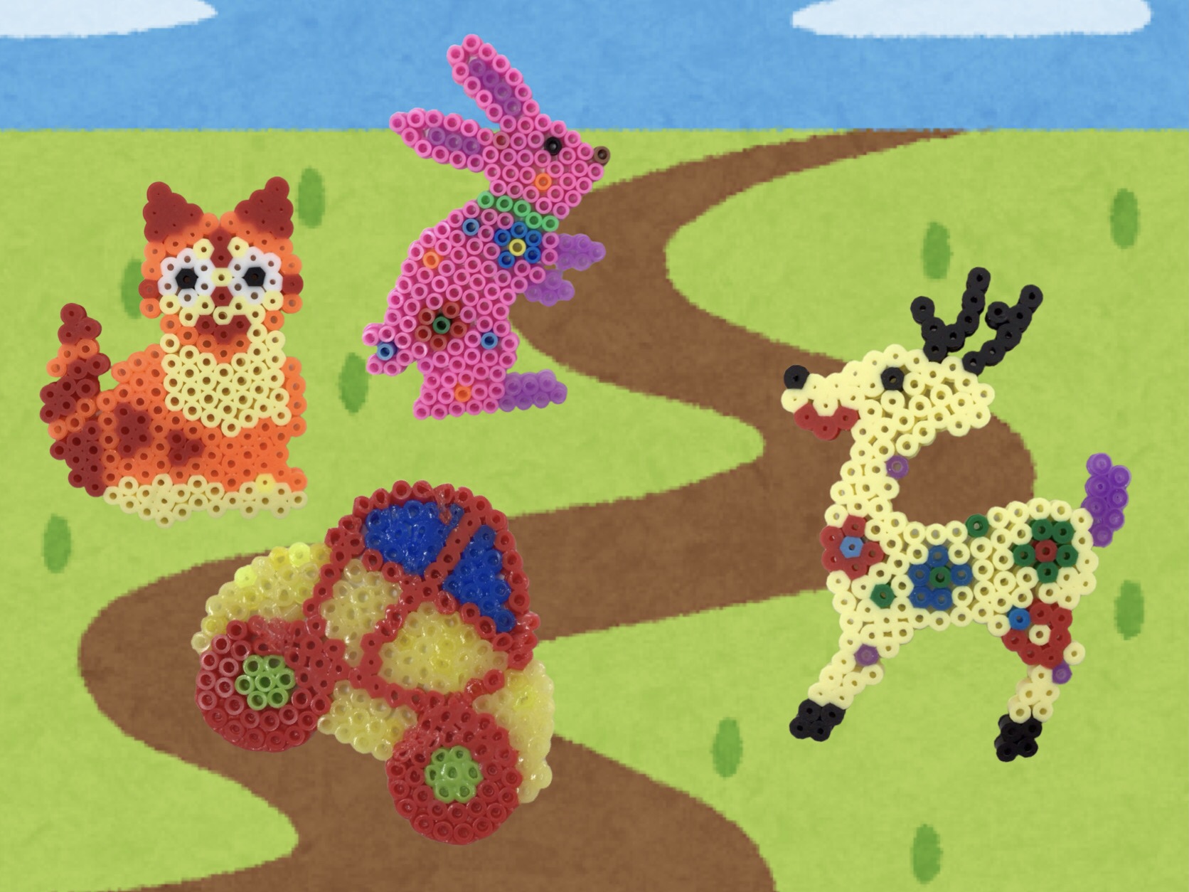 作品名 「ネコとうさぎ」(アイロンビーズ)