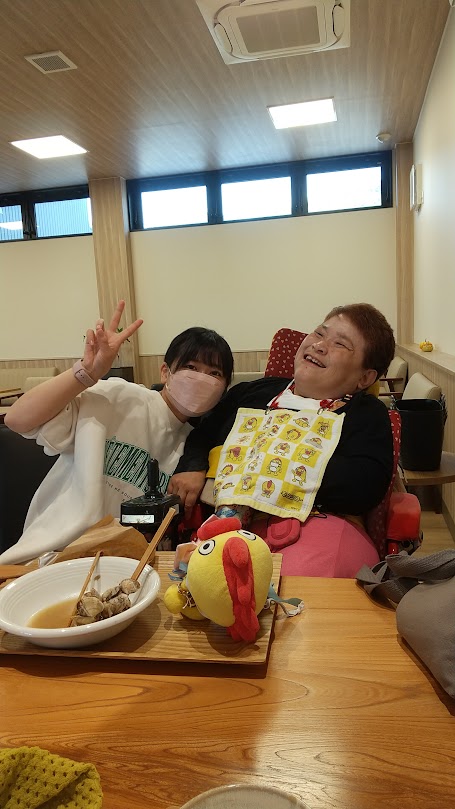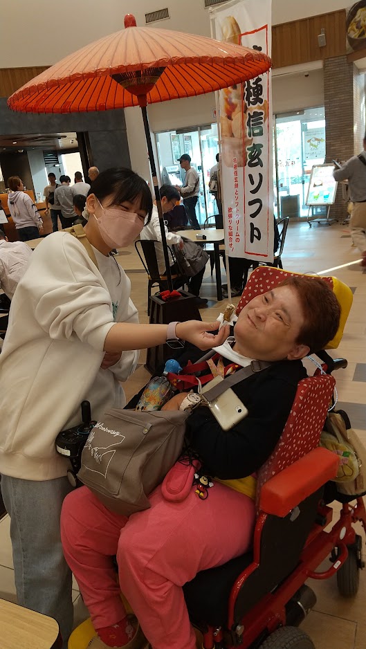 談合坂では、みんな甘いもので疲れを癒しました☆Mさんは最後にお土産の配送をお願いして、やり切った姿で登場です!楽しかった1日はあっという間で、さあ談合坂から送迎スタートです!途中渋滞で大幅に帰宅が遅くなってしまったグループもありましたが、みんな前向きに帰りも楽しく無事故で帰ってくることができました!ご家族やヘルパーさんには荷物の準備などでお世話になりありがとうございました!