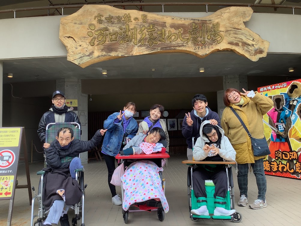 第二若駒の家「グループ企画第二弾」の報告です!10月と11月に、4グループに分かれまして、久しぶりに「河口湖」に行ってきました。今回は、去年新しくできた「旅の駅 kawaguchiko base(カワグチコベース)」と「河口湖猿まわし劇場」に行ってきました。