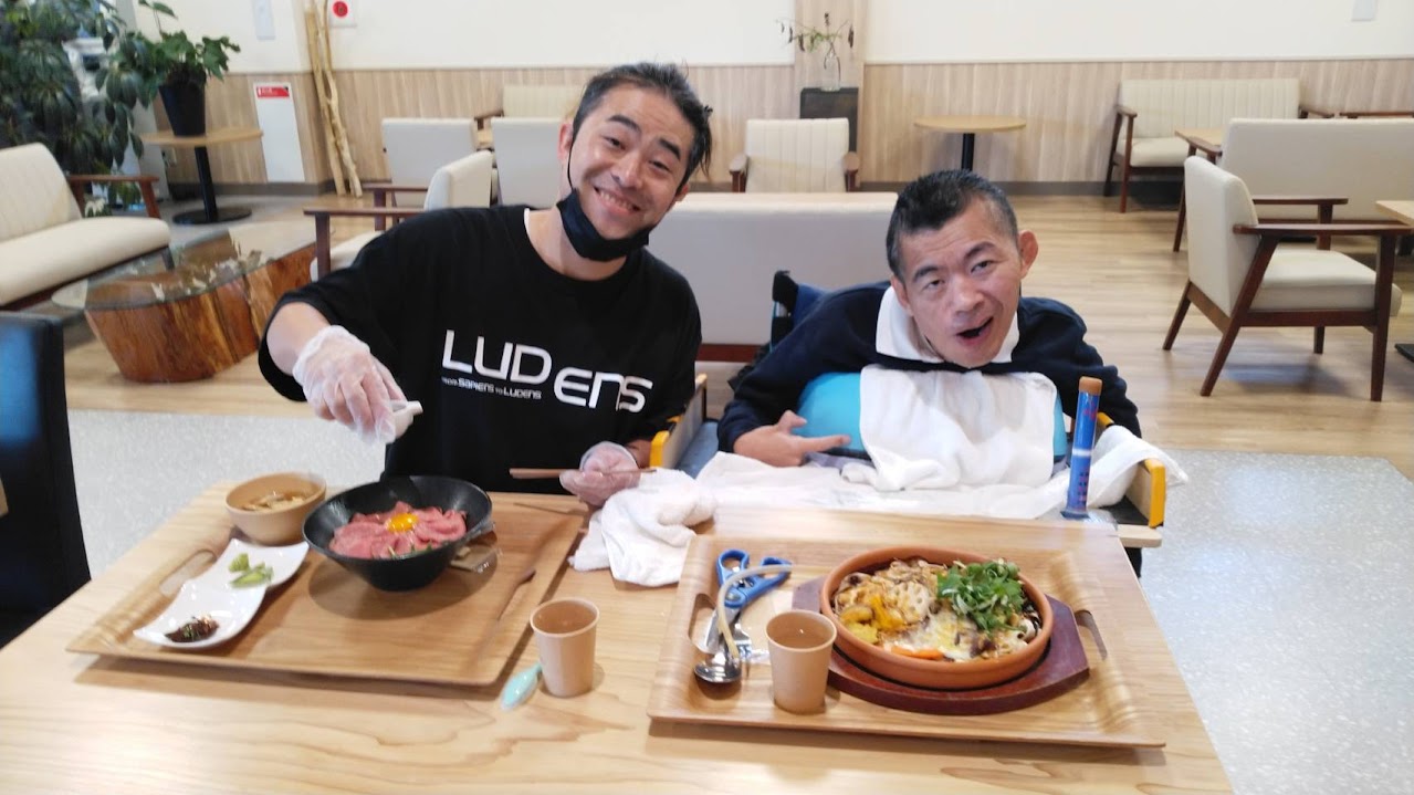 久しぶりの遠出で、車中も盛り上がりました!渋滞に悩まされたグループもありましたが、中央道をよく利用しているFちゃんが「いつもここで渋滞してるよ(特別なことではないよ)」と前向き発言してくれてとても助かりました! 旅の駅に到着ーーー!!!山梨名物の「ほうとう」「甲州牛」「信玄鶏」を使ったメニューに舌鼓を打ちました!!みんなで食事するのも本当に楽しい!!みんなも嬉しそうですね!!